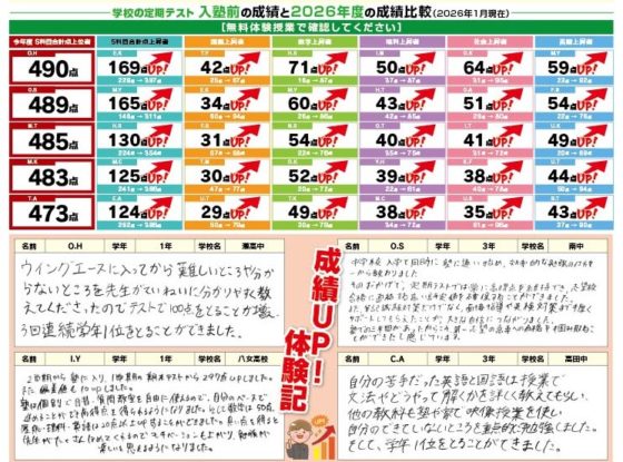 ウィングエースでは、全学年の総復習と新学年の先取り学習を徹底サポート。